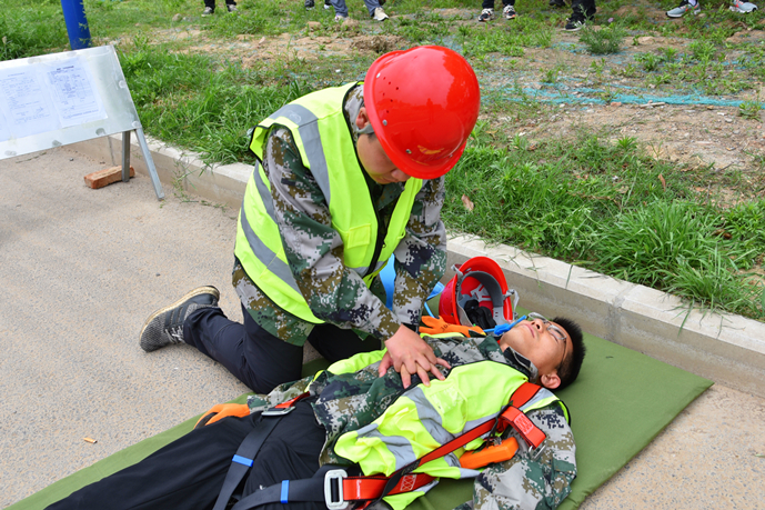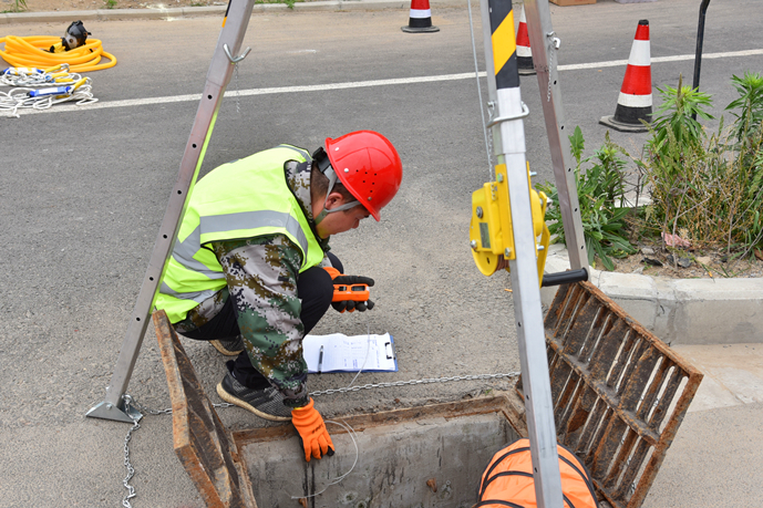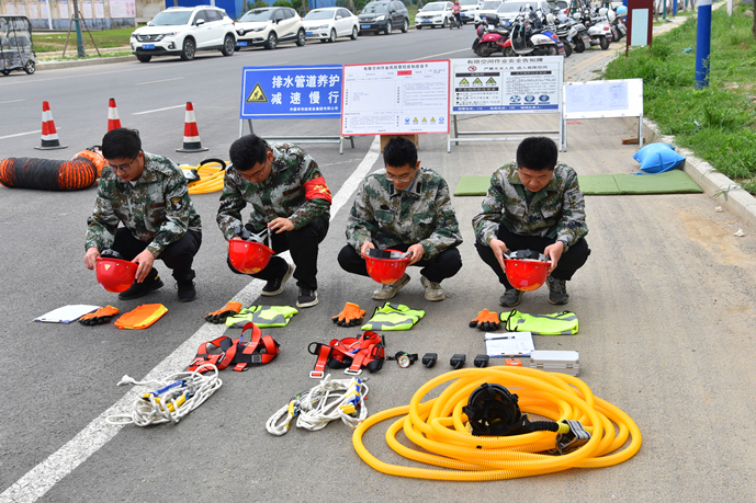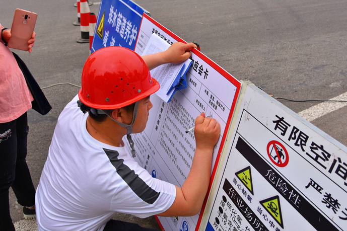 “各參演人員就位,演練開始!”隨著演練指揮長的一聲令下,演練正式開始。作業(yè)區(qū)域內(nèi),作業(yè)人員將施工標(biāo)志牌、導(dǎo)向標(biāo)、爆閃燈等警示標(biāo)志放在適當(dāng)顯眼的位置,按照地下空間作業(yè)安全操作流程的要求,相互配合完成各項作業(yè)任務(wù)。演練模擬了作業(yè)人員下井作業(yè)時受有害氣體侵?jǐn)_的突發(fā)情況。期間,地面同伴發(fā)現(xiàn)地下作業(yè)人員發(fā)生危險,立即向指揮長匯報情況,指揮長收到匯報后迅速啟動《地下有限空間作業(yè)應(yīng)急救援預(yù)案》,并派出救援組攜帶救援物資緊急趕往現(xiàn)場救援。