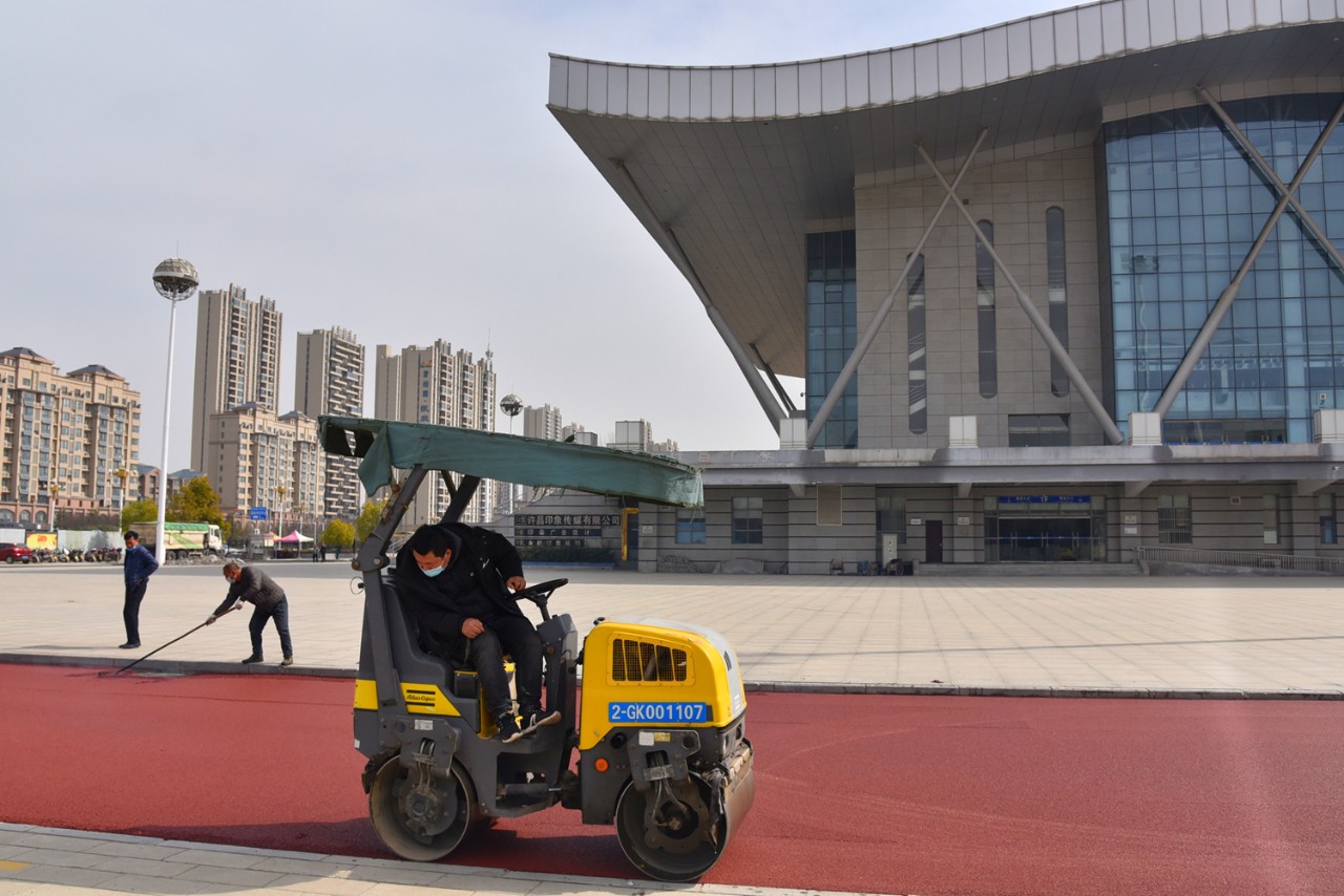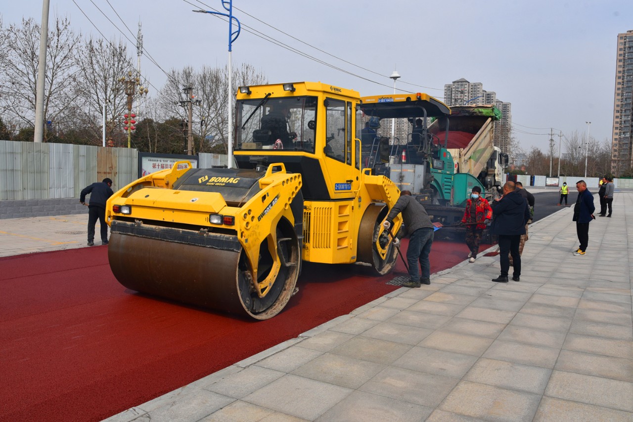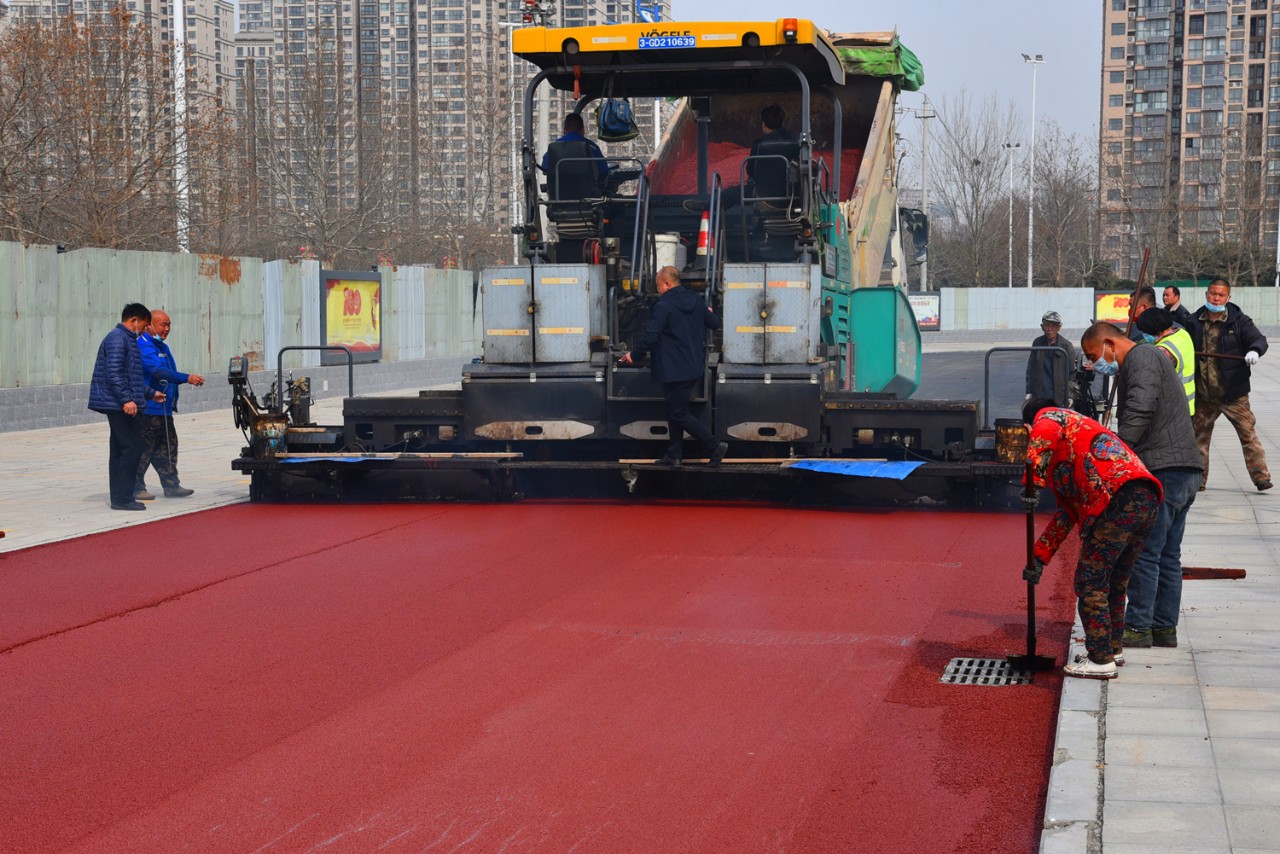 3月4日7時,在生產(chǎn)機(jī)器隆隆的轟鳴聲中,許昌市政集團(tuán)自主生產(chǎn)的第一車彩色瀝青混凝土成功出廠。伴隨著冉冉升起的朝陽,滿載著彩色瀝青混凝土的運(yùn)輸車駛向施工工地。